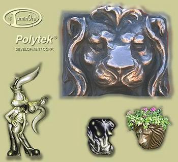 LuminOre gives base material the appearance of a solid cast metal object without the weight. The patented cold-sprayable process allows a thin layer of metal to be applied over almost any substrate, in virtually any configuration or design. LuminOre, when properly applied, is durable, will not crack, chip or peel(30years) and is suitable for exterior as well as interior use. Once cured, the product looks and acts like solid metal, with all the characteristics of a cast metal piece including texture, luster, heat conductivity and reflection.